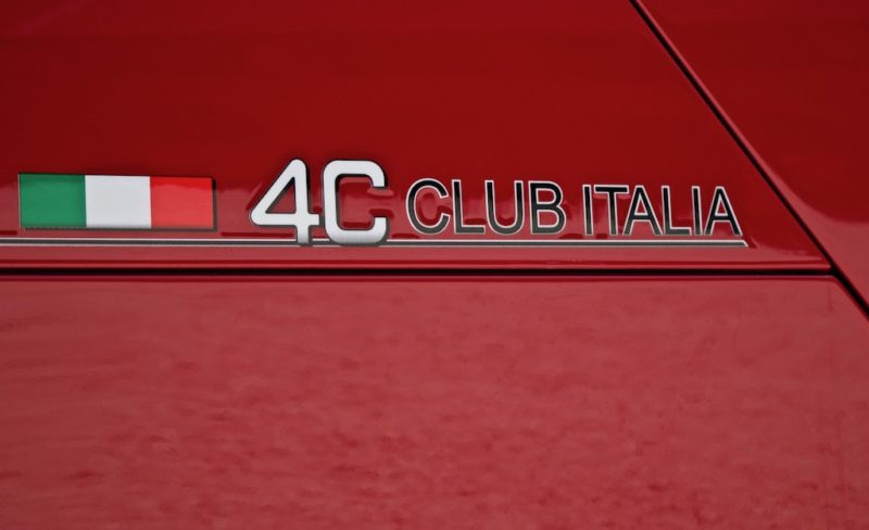 Alfa Romeo 4C Club Italia è una versione fuoriserie della nota sportiva del Biscione, espressamente allestita per i Soci del Club. Sono stati incrementati l’impiego di materiali ultraleggeri come: il carbonio (per il tetto, le appendici aerodinamiche anteriori, coprifari anteriori, specchietti retrovisori, spoiler posteriore) e il titanio (per gli speciali scarichi centrali). Esclusivo il colore della livrea, Rosso Alfa Romeo corse vintage fine anni 60. Impreziositi alcuni elementi, quali i coprifari in carbonio anteriori e gli specchietti retrovisori, dal tricolore per sottolineare che questa supercar non poteva che essere il frutto della capacità tecnica e dello stile italiano. La vettura reca il simbolo del Club Italia sulle fiancate anteriori di destra e di sinistra. All’interno sulla plancia fronte passeggero. Sulle fiancate posteriori la scritta 4C Club Italia. Ogni esemplare è personalizzato da una targhetta posta sul brancardo lato guida che riporta il numero di serie progressivo. Alfa Romeo 4C Club Italia prosegue una lunga tradizione iniziata nel 1988 con il prototipo di un Alfa Romeo famigliare ad alte prestazioni e la speciale versione della Fiat Tipo 16 valvole presentata nel 1988 nella piazzetta di Portofino. Nel 1992, in stretta collaborazione con Lancia è stata realizzata una versione speciale della Delta integrale numerata, personalizzata e riservata in esclusiva ai Soci (16 esemplari).