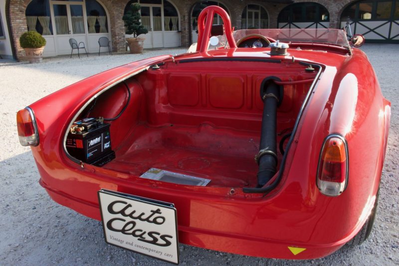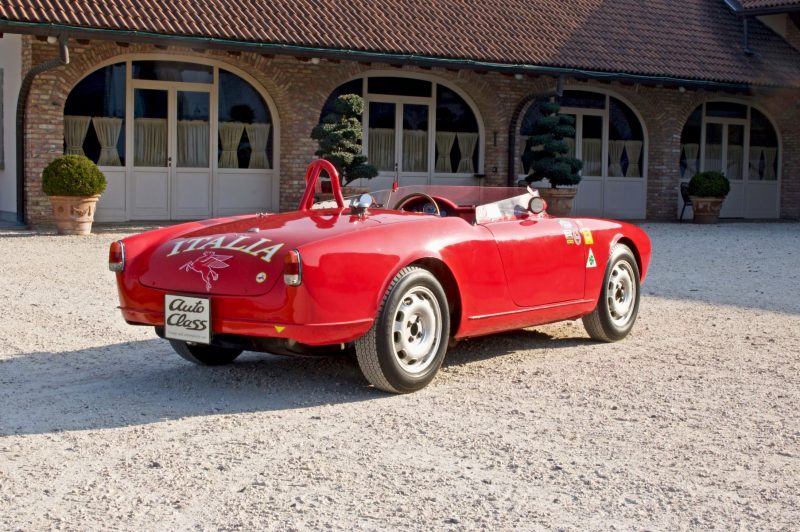 Questa Giulietta Spider è stata professionalmente trasformata in barchetta, sulla falsariga della barchetta che corse a Sebring, circa 30 anni fa, probabilmente da Cappa, il fratello del proprietario della KCA e specialista Lancia. Risparmiare peso è stata una priorità assoluta: le porte, il cofano e il cofano del bagagliaio sono stati sostituiti con elementi in alluminio, mentre le ruote sono in lega di magnesio. Il motore è un’unità di 1.600cc della Giulia TI, probabilmente preparata dal noto specialista Alfa Romeo, Chiapparini. Questa barchetta ha corso in numerose gare a partire dal 1985, conquistando come miglior risultato un più che rispettabile 30° posto assoluto e 13° di classe alla Targa Florio Storica del 1986, dove ha combattuto contro auto come, tra gli altri, Ferrari 250 GTO e 250 TR. L’auto è offerta con documenti di immatricolazione italiani, copia di svariate foto scattate durante alcune delle competizioni a cui ha preso parte ed una copia dei risultati finali della Targa Florio del 1986.