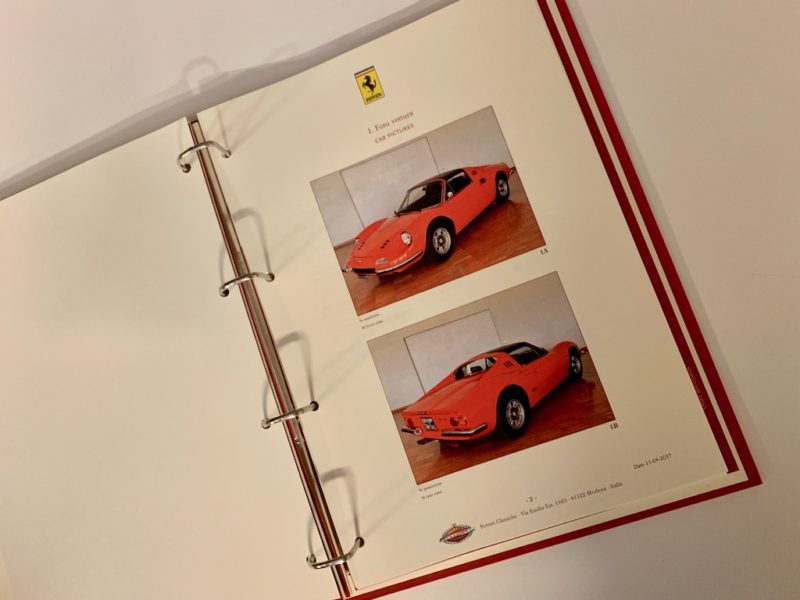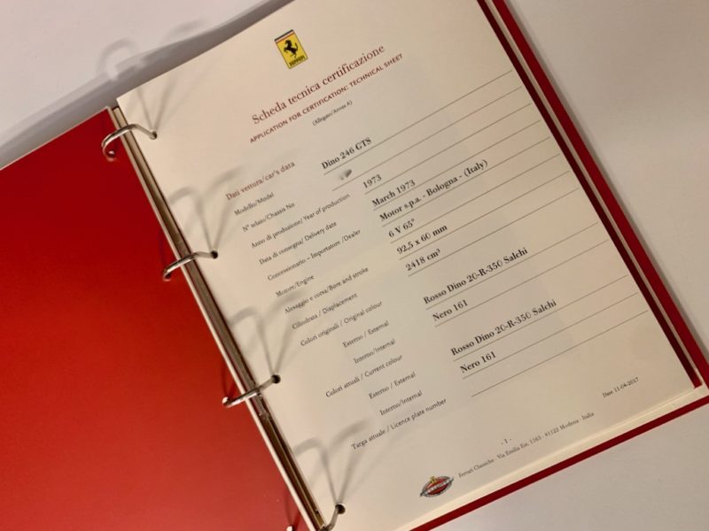 Il nome Dino era in omaggio allo scomparso figlio di Enzo Ferrari mentre la sigla 246 indicava la cilindrata di 2,4 litri ed il numero di cilindri 6 con disposizione a V. Questa denominazione, ereditata dalla precedente 206, venne ripresa anche dalle successive 208 e 308 GT4.La Ferrari Dino 246 venne prodotta in diverse versioni sia coupè (GT) che spider (GTS) tra il 1969 e il 1973. La 246 era la naturale evoluzione della precedente 206 dalla quale differiva sotto molti punti di vista. La carrozzeria fu ideata dal designer della Pininfarina Aldo Brovarone ed il motore era derivato dall’ultimo propulsore sportivo progettato da Alfredo Ferrari, scomparso nel 1956. Si trattava di un V6 di 65° trasversale, primo motore di questo tipo montato su un veicolo della casa di Maranello che aveva, fino ad allora, sempre preferito propulsori a 12 cilindri.Per questo venne considerata una sorta di “baby” Ferrari, ma le sue prestazioni e il suo comportamento stradale erano paragonabili a quelli di modelli con motori più frazionati ed il pubblico ne decretò il successo con una produzione di 2487 esemplari, numeri importanti per quel periodo.