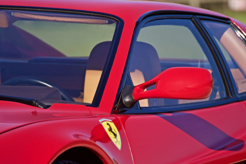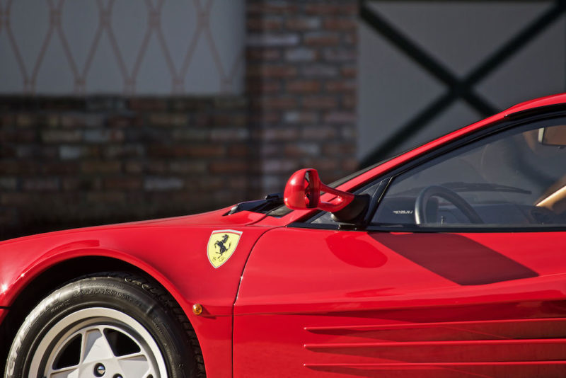 In origine la Testarossa aveva un solo specchietto retrovisore molto sporgente e posto curiosamente a metà del montante del parabrezza, per tentare di migliorare la scarsissima visibilità posteriore, ostacolata dalla massiccia coda; tale collocazione non era, in effetti, particolarmente elegante, per cui nel 1986 si passò ad una soluzione più tradizionale, con due specchietti alla base dei montanti.