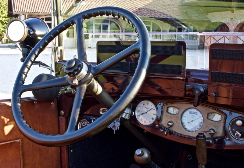 Per le automobili europee dell’inizio del XX secolo lo sterzo era posizionato centralmente con la posizione di guida a destra. All’epoca non c’era comunque una normativa che regolamentava il flusso dei veicoli a destra oppure a sinistra della carreggiata.