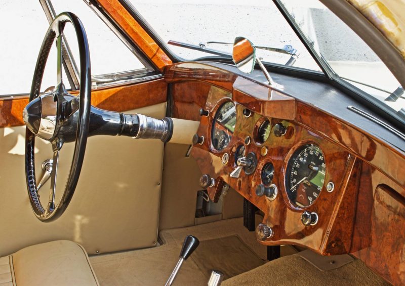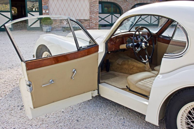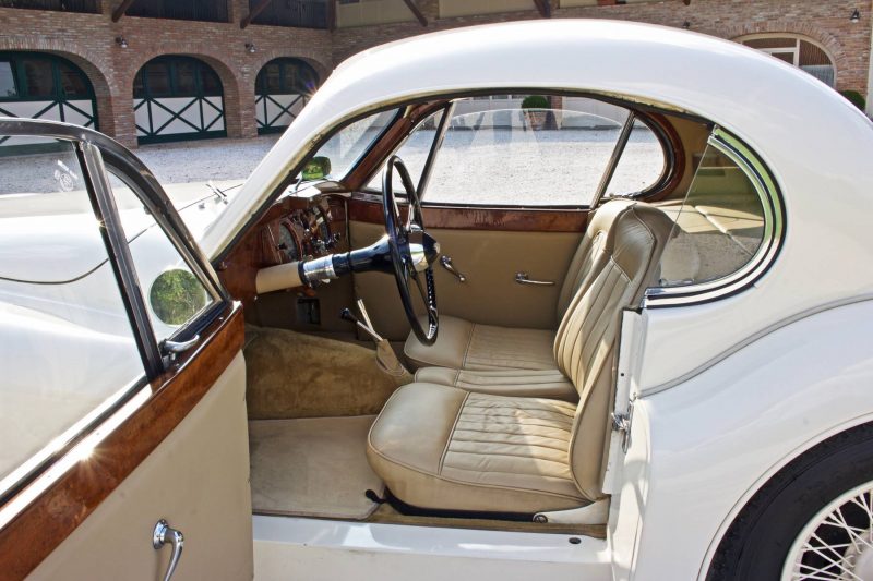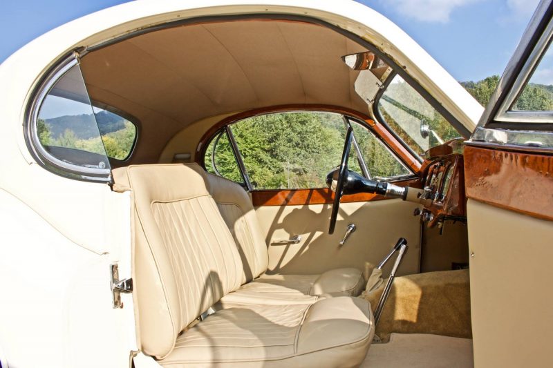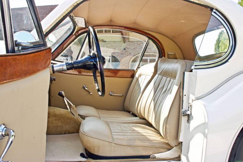 Coupè inglese anni 50 di colore bianco con intenti in pelle avorio completamente sistemato di motore, meccanica e ciclistica in tempi recenti.