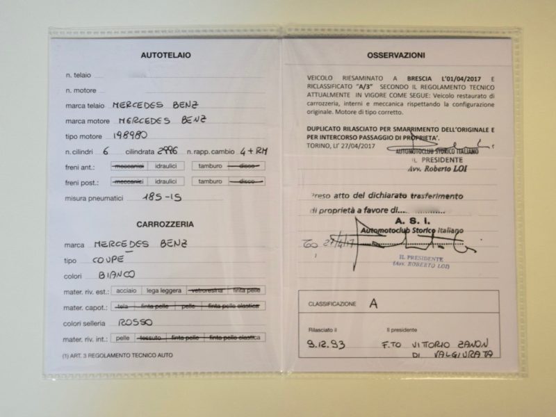 Documenti : Certificato d’origine Mercedes-Benz