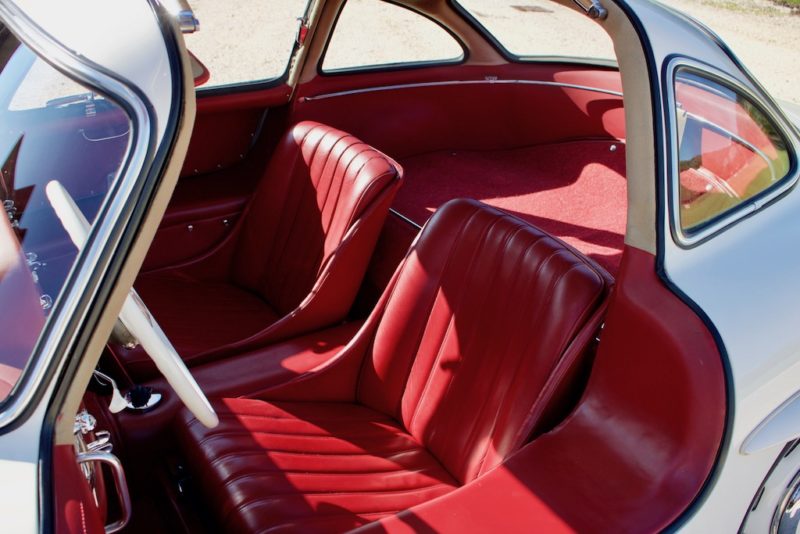 La particolare struttura fisica del corpo vettura della 300 SL obbliga chi sale a bordo a scavalcare letteralmente la soglia d’accesso all’abitacolo, decisamente molto alta a causa dell’ingombro notevole del telaio tubolare lungo le fiancate. Una volta entrati bisognava lasciarsi ricadere sul sedile. Insomma, bisognava avere una certa predisposizione fisica, fatto che poteva avere ripercussioni sulle vendite della vettura, secondo la Casa tedesca. Inoltre, fu ancora Max Hoffmann a far notare ai vertici Daimler-Benz come una simile modalità di accesso all’abitacolo potesse risultare scomodo per una signora che avesse indossato una gonna. Fu per questo che nel 1957 la 300 SL Ali di gabbiano venne tolta di produzione e sostituita dalla corrispondente versione roadster, che si poneva ad un livello più alto della 190 SL, presentata nel 1955 ispirandosi alla 300 SL nell’estetica esterna.