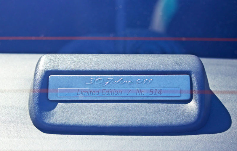 Per celebrare il trentesimo compleanno della 911, fu commercializzata in settembre, la 911 30yahre, conosciuta anche come “Giubileo”: il corpo vettura era quello della Turbo (senza l’alettone) e la meccanica quella della Carrera4. Dotazione molto ricca, compreso il raffinato cruscotto rivestito in pelle, due colorazioni disponibili (melanzana o grigio) solo 911 esemplari prodotti. Numero limitatissimo, tanto che per soddisfare le richieste dei clienti, furono vendute anche alcune 911 con look identico alla Giubileo, ma senza targhetta numerata posta dietro al lunotto.